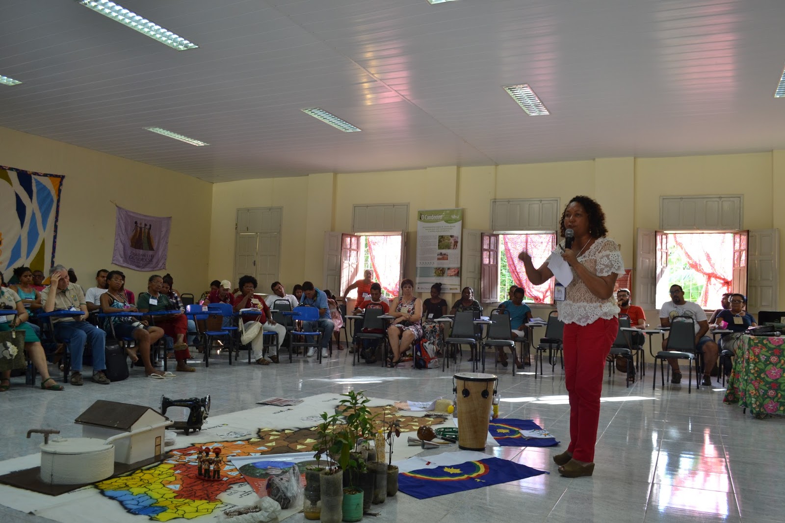 A quilombola Maria de Lourdes definiu o contexto como um retrocesso. “O atual presidente manchou o que chamamos de democracia. Aprendi que isso representava a vontade da maioria e, assim, fizemos, pois elegemos Dilma, mas o nosso desejo não foi respeitado. Outra coisa que me deixa triste é ver que muitos direitos, que foram conquistados por nós, estão sendo ameaçados e outros tantos já foram cortados”, explicou. Em seguida, a mesa teve início com a participação de uma das representantes da Colegiada do CETRA, Cristina Nascimento, e do coordenador do Movimento dos Trabalhadores Sem Terra em Pernambuco, Jaime Amorim.